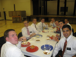 We had a wonderful lunch time when we get to visit and watch all the missionaries have fun together. When the missionaries stand in a big semicircle and sing "Called to Serve" for the Relief Society Sisters who make lunch my heart just swells. It is an incredible sight and sound. After lunch we go to the chapel and have talks and testimonies and musical numbers. Today 4 Sisters performed together. Sisters Jacobsen, Hahn, and Bay sang and Sister Lau accompanied them. They sounded like angels. During this portion of the meeting the spirit bears witness to me that these are God's elect out here serving the Lord.